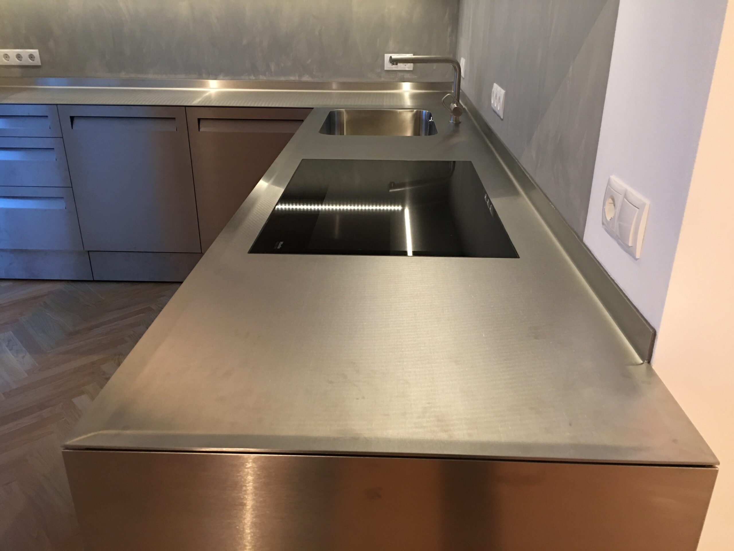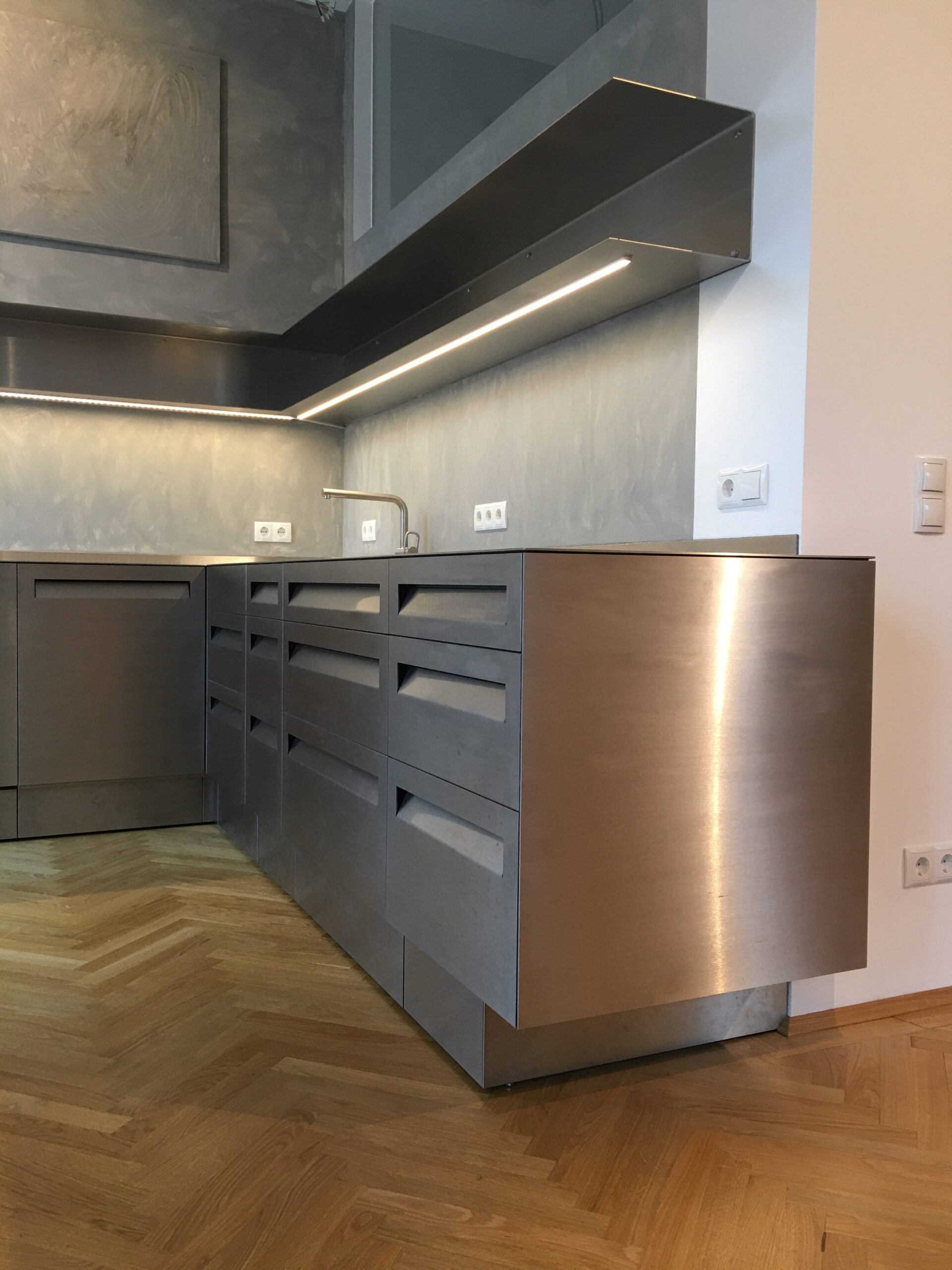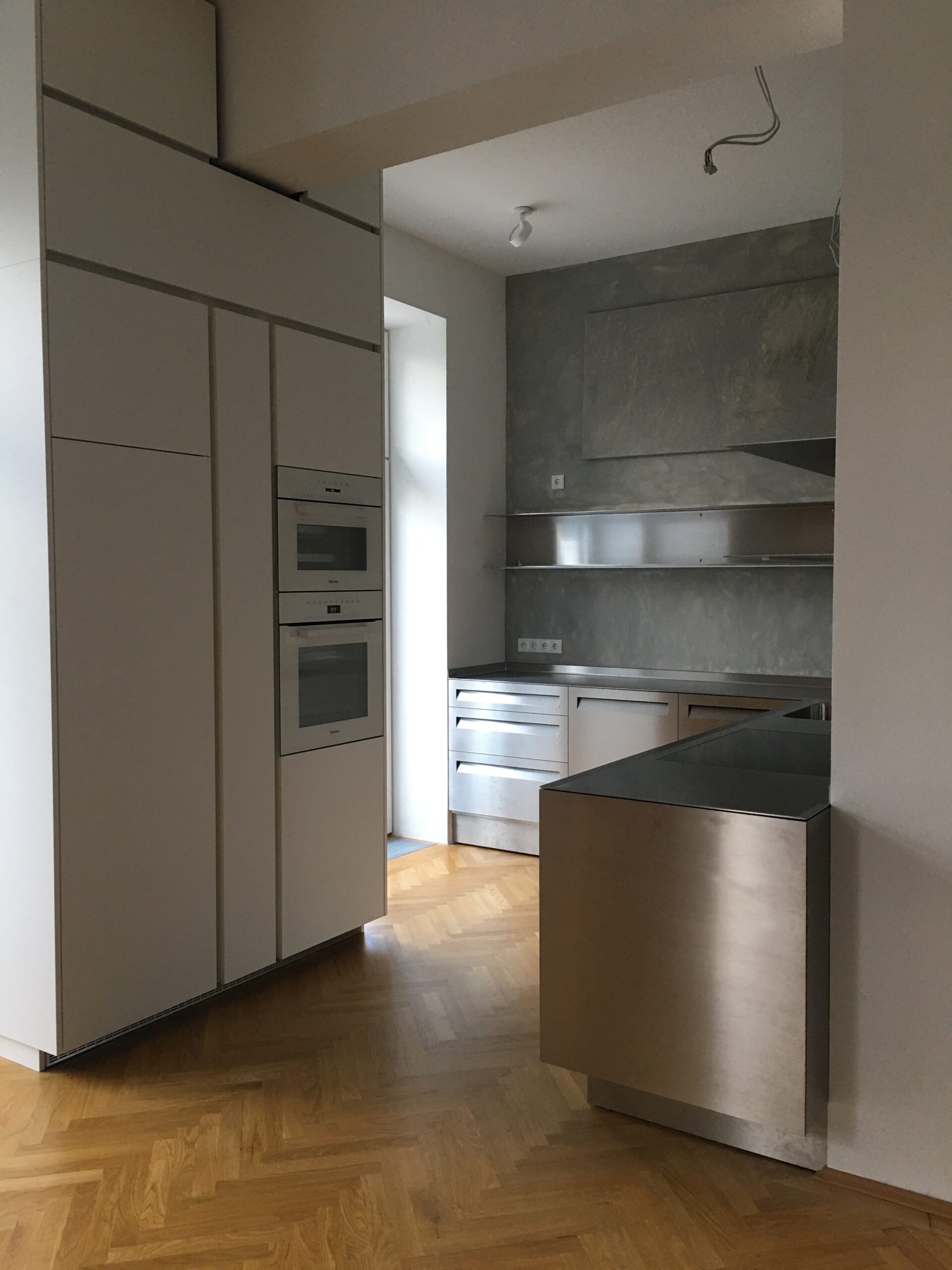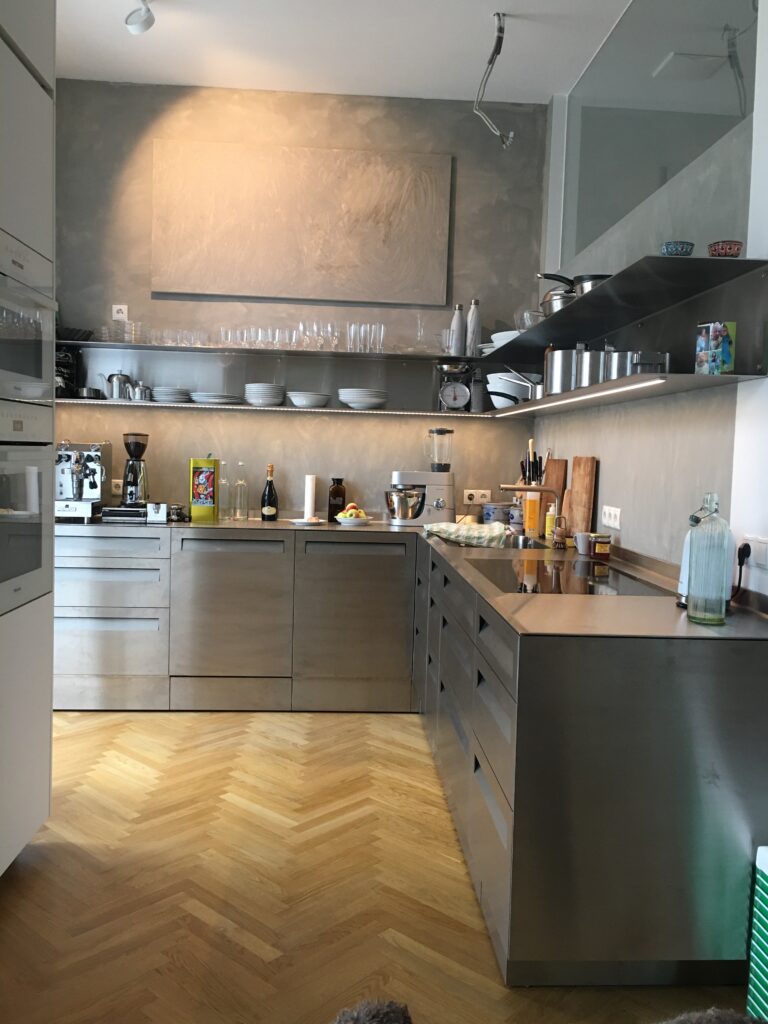Schichtverleimtes Pappelholz, Oberfläche Lärche, Verbindungsteile aus Metall